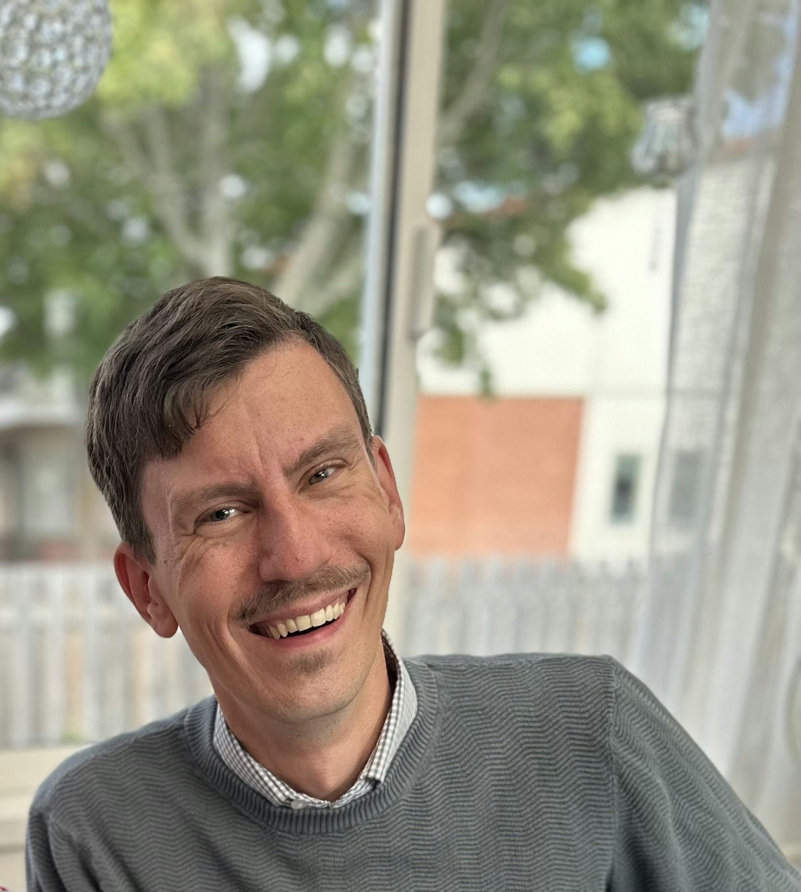 Leder dagen gör Jim Lagerlöf som är konsulent på KPN, utbildad lärare och teolog.
