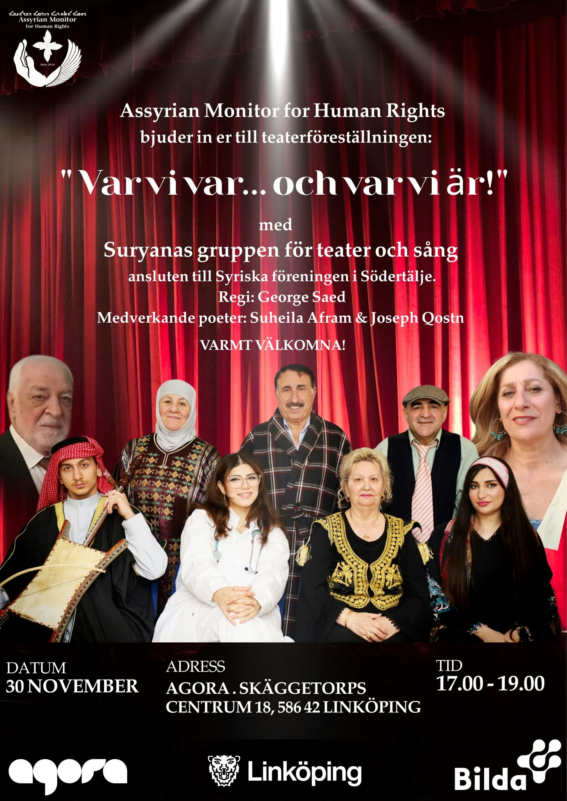 Assyrian Monitor for Human Rights bjuder in er till teaterföreställningen: "Var vi var... och var vi är!" med Suryanas gruppen för teater och sång.
