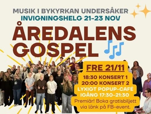 Fredag 18:30 & 20:00 ÅREDALENS GOSPEL under ledning av Therese Sjölundh och Louise Westerlund.