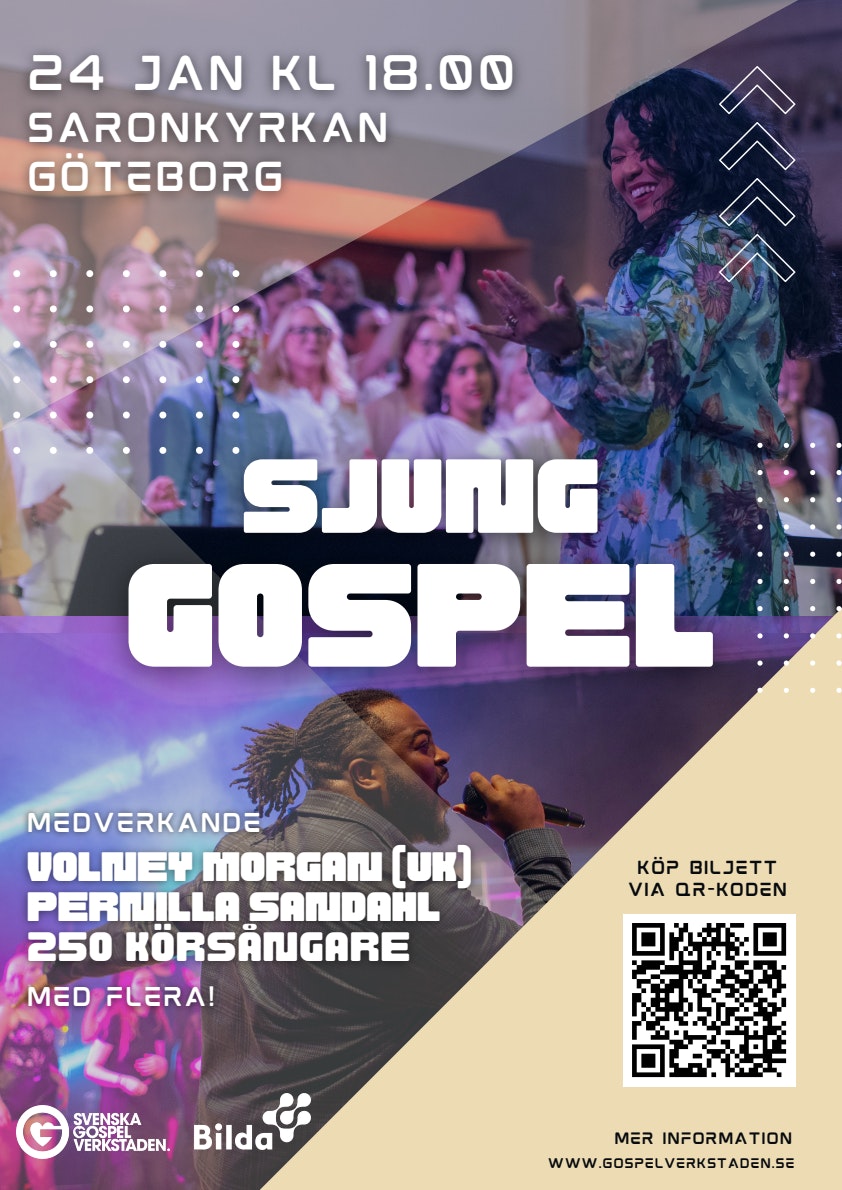 Tillsammans med över 200 körsångare, körledare Volney Morgan UK, Pernilla Sandahl, Mikaela Häger, Zackarias Holmdahl-Sjöberg mfl, bjuder Svenska Gospelverkstaden och Gospelverkstaden Väst in till en medryckande konsert där du som publik får uppleva och beröras av gospelmusikens hoppfulla budskap. Kicka igång året med en riktig glädjefylld gospelupplevelse.
