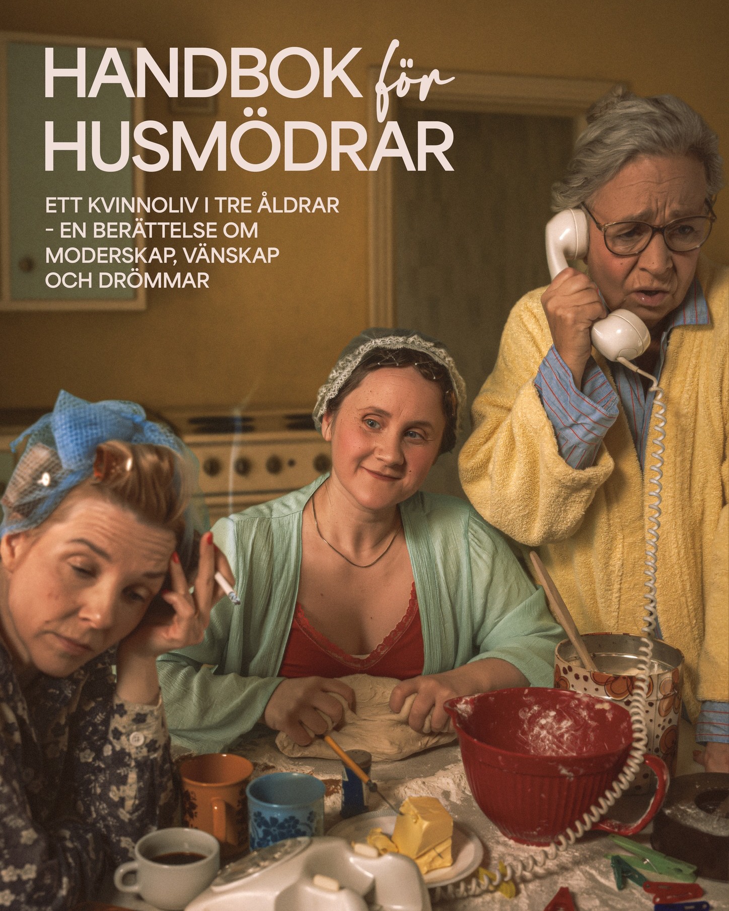 Handbok för husmödrar är en teater där vi får följa Esters vindlande tankar och minnen och som en röd tråd löper musiken - både från radion på köksbänken och live. Musiken speglar både samhället utanför Esters kök och de känslor Ester bär på; från 50-talets dansband, 70-talets politiska progg, 90-talets pop och vidare