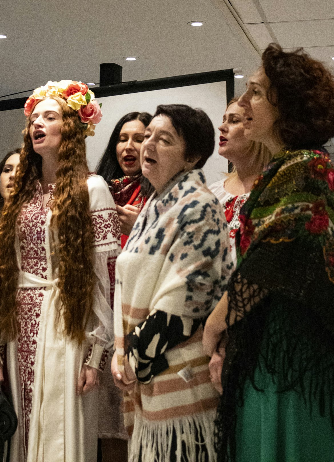 En mycket rolig fest!, säger Ynna, som under kvällen bjöd på ukrainska sånger tillsammans med andra kvinnor och barn från språkkaféet.