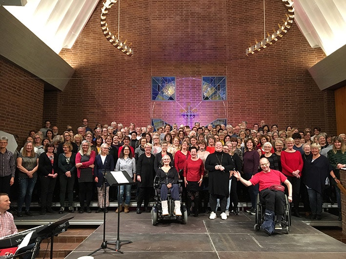 Varje övning börjar med andningsteknik för att få igång kroppen och rösten. Det gör att vi mår bättre som människor. Sedan tillkommer både njutningen av musiken och gemenskapen i att sjunga i en stor grupp!