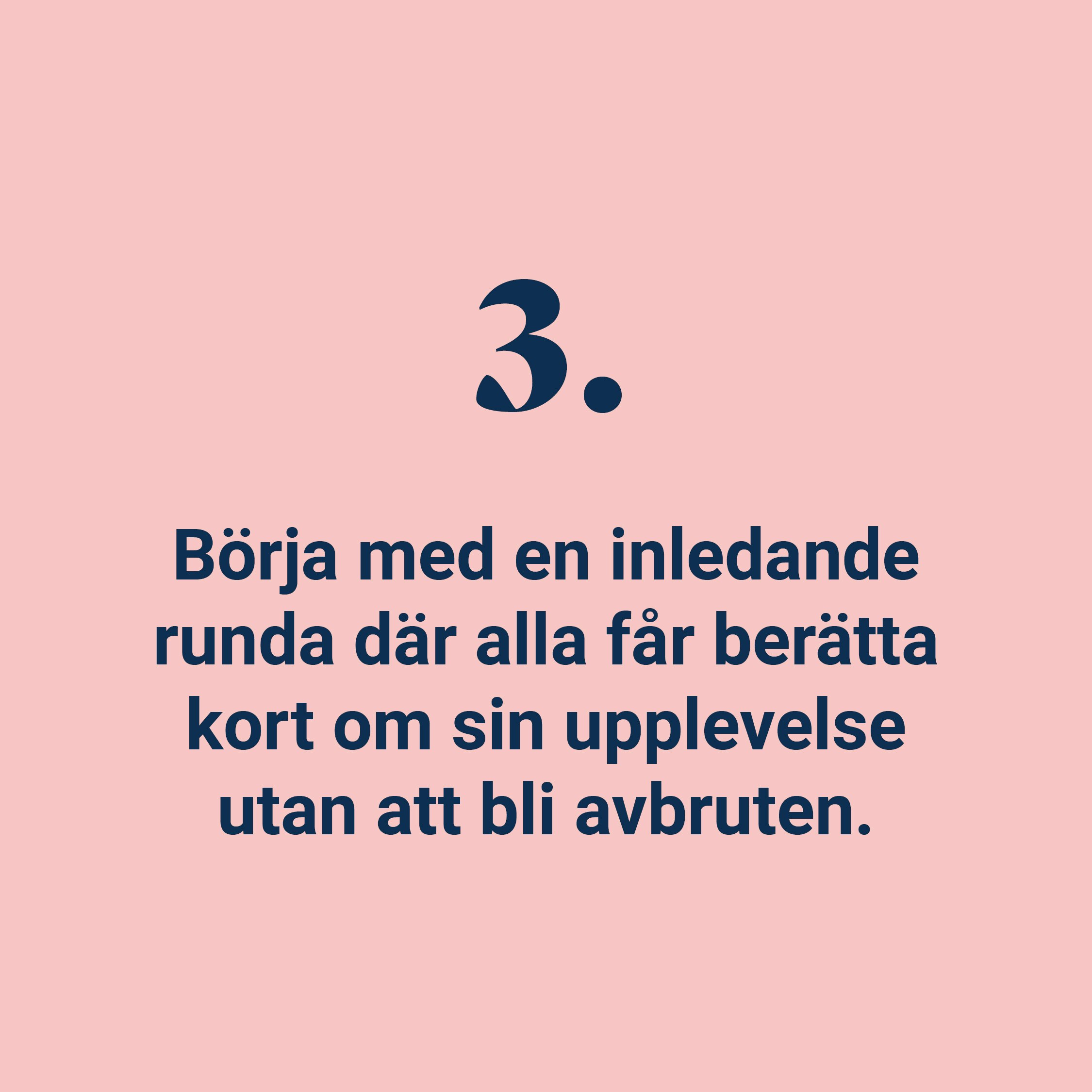 - Ni bör vara minst tre personer i gruppen och helst inte fler än åtta för att alla ska kunna få tillfälle att prata.